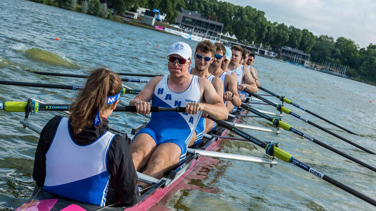 Am Start war auch der Achter vom Ruderclub Hansa Dortmund. Nach einem zufriedenstellend verlaufenen 1. Renntag (Platz 10) und einem schlechten 2. Renntag (Platz 16) fuhr das Team um Schlagmann Elwin Stach mit eher verhaltenen Erwartungen nach Münster. Denn die Vorbereitung war alles andere als optimal verlaufen: