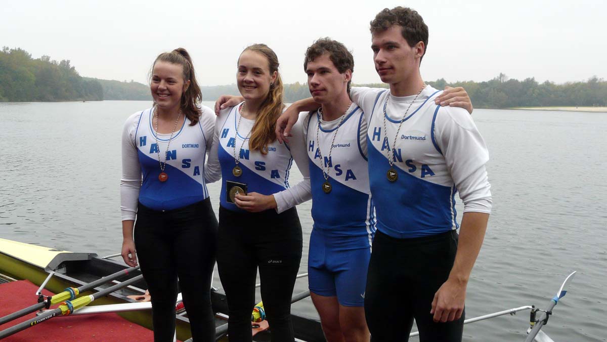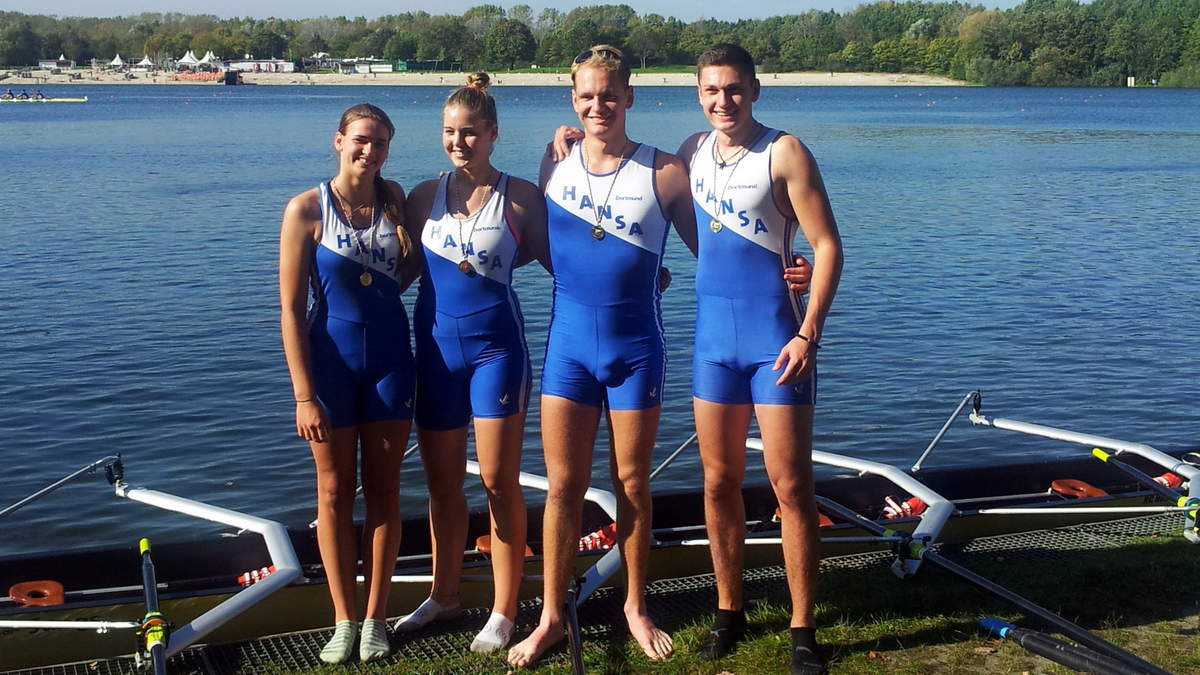 Am Sonntag zogen in der offenen Frauen-/Männerklasse Leslie Hartung, Franziska Doppke, Jan und Lars Knipschild nach: im "Lokalderby" sicherten sie sich in einem hart umkämpften Rennen vor dem Team aus Gelsenkirchen die Goldmedaille.