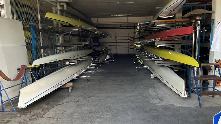 Auch in der Bootshalle hatte sich über die Zeit wieder viel Staub und Unrat angesammelt und einiges Equipment konnte wieder an seinen angestammten Platz gebracht werden. Bei der Gelegenheit wurden auch einige Boote nach langer Zeit wieder aufgeriggert. An der Stelle nochmal die Bitte, hier keinen Müll, Pfandflaschen oder Trinkflaschen einzulagern. Martin hat sich natürlich auch traditionell wieder um die Säuberung der Dachrinnen gekümmert und auch die Kraft- und Ergoräume wurden kontrolliert.