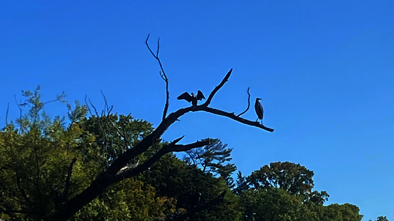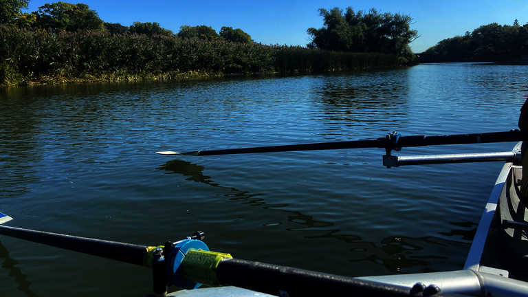 Dann ging es endlich aufs Wasser. In einem Coastal-Zweier zeigte mir Ernst zunächst das Ruderrevier auf dem Credit River. Hier gab es aufgrund der Naturbelassenheit einige tückische Untiefen und Schilfinseln, die man besser kennen sollte. Anschließend sind Luisa und ich eine größere Runde gerudert. Bei bestem Wetter - dank Indian Summer - genossen wir die Natur, springende Lachse, unzählige Reiher, Kormorane und uns unbekannte Wasservögel gab es ebenfalls zu sehen.