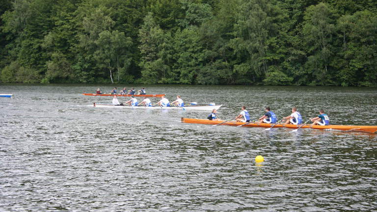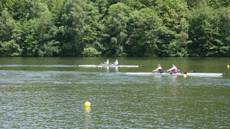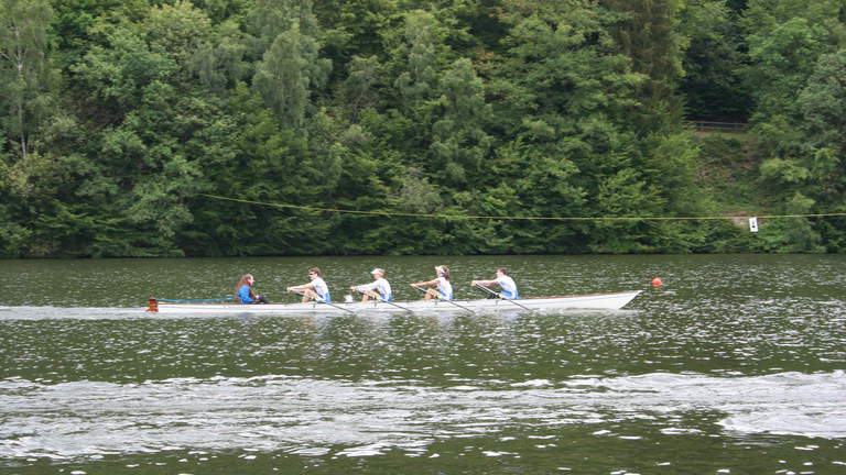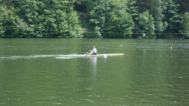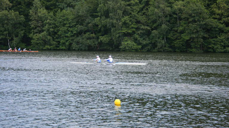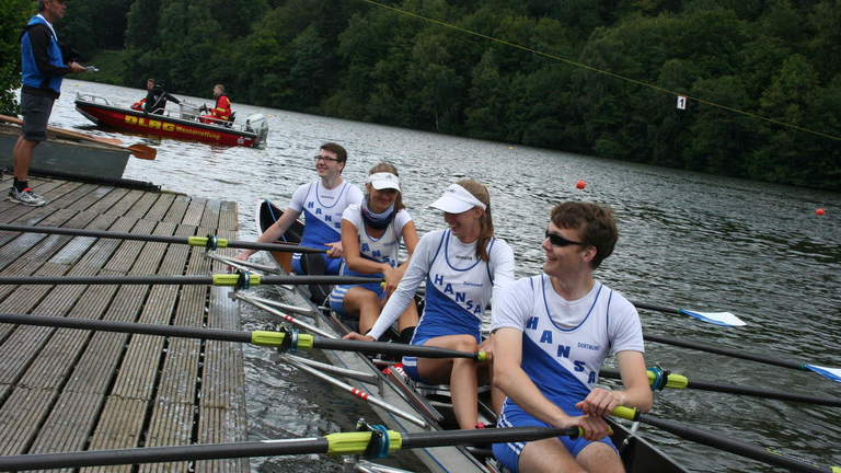 Am Sonntag fand die Langstrecke statt. Der Großteil der Truppe machte sich allerdings schon früh morgens auf den Weg nach Köln, um die anderen Vereinskameraden bei den deutschen Meisterschaften (U17, U19, U23) anzufeuern, was sich durchaus lohnte. Übrig waren Birthe Ottjes, Katharina Schmidt, Daniel Smit, Tobias Vogel und Ida Steinestel, die im Mix-4er einen Halbmarathon (3 Runden à 7 km) ruderten. Belohnt wurden sie dafür mit einer Goldmedaille. Zufrieden machten sie sich dann samt Bootshänger auf den Weg zurück nach Dortmund.