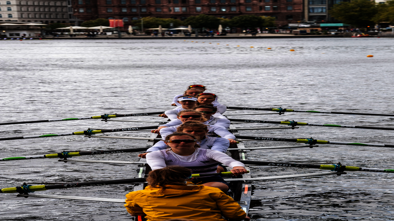 Nach einer langen Anfahrt hat das Team aus Krefeld mit Unterstützung von zwei Dortmunderinnen nun auch endlich die ferne Stadt Hamburg erreichen können. Nachdem der alltägliche Trubel des Teams überwunden wurde, alle Ausleger, Skulls und Rollsitze an Ort und Stelle waren konnte am Samstag Morgen auch schon an den Start gegangen werden. An diesem Renntag waren aus Dortmund Anne Mittenmeyer und Jette Henkel vor Ort.