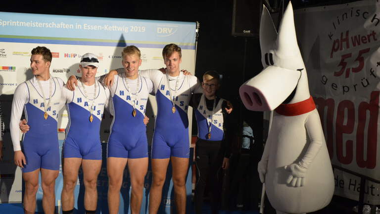 Unsere Hanseaten haben toll gekämpft. Korwin Hildebrandt, Elwin Stach, Felix Barkowsky, Simon Holtmeyer und Steuermann Tim Wadewitz haben es auch auf das Treppchen geschafft und Bronze gewonnen.