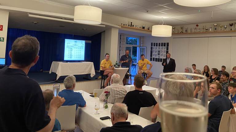 Der Vorsitzende des RC Hansa, Georg Kreimeyer, begrüßte Tabea Schendekehl , die direkt von den Olympischen Spielen aus Paris, mit ihrer Bronzemedaille angereist war, sowie Julius Christ im Bootshaus.