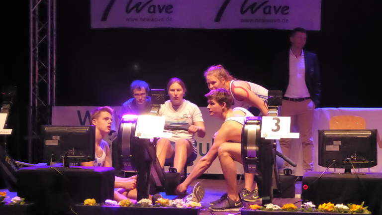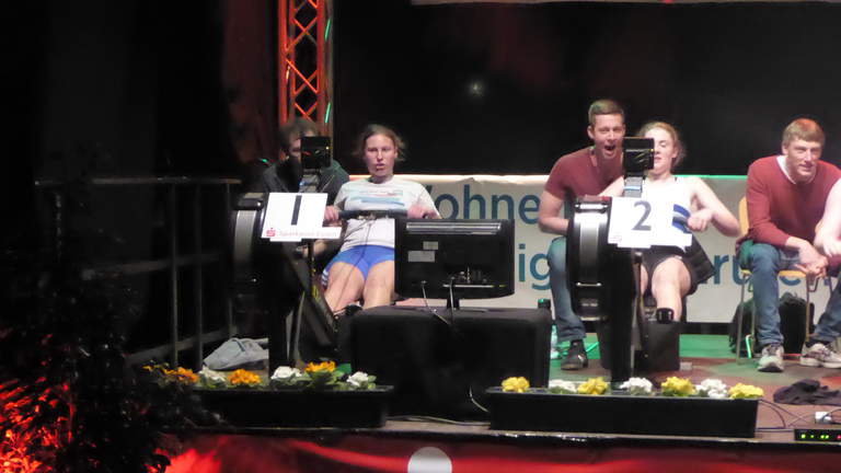 Nach den Einzelrennen gab es dann noch den Höhepunkt des Ergo-Cups: Die Mannschaftsrennen. Diese werden immer mit Mixed-Mannschaften gefahren und sind seit Jahren eine Domäne der Hanseaten aus Dortmund. Wenn man sich nur einen Wettbewerb anschauen kann oder will, so sollten es zweifelsohne die Vereinsvierer sein. Herzrasen und Stimmverlust sind garantiert. Also nichts für schwache Nerven.
