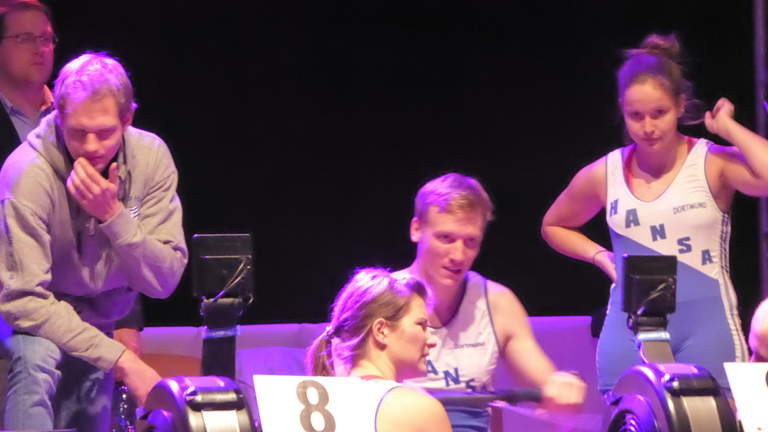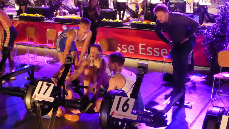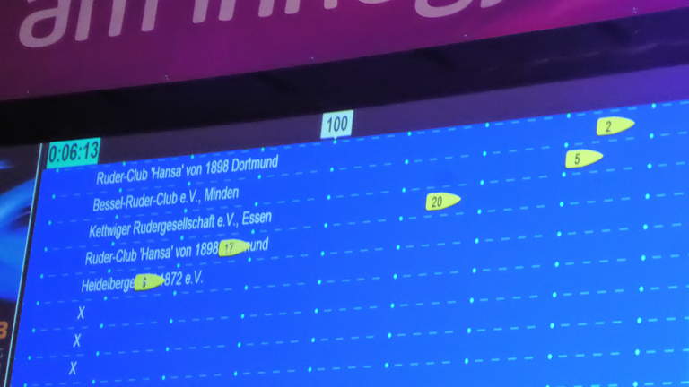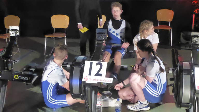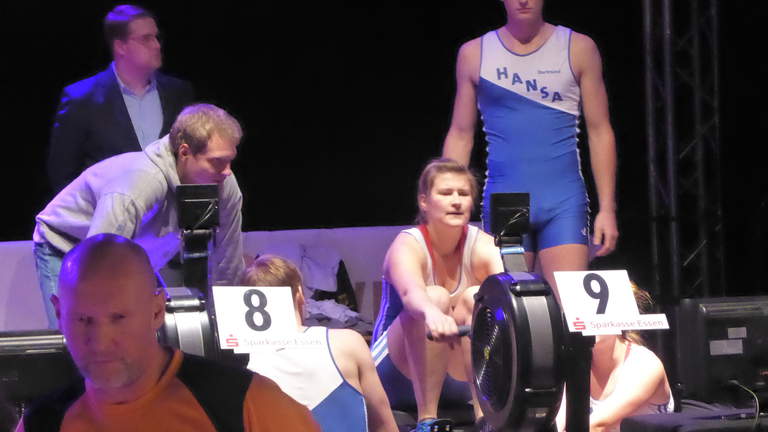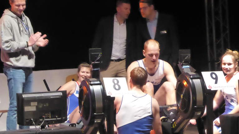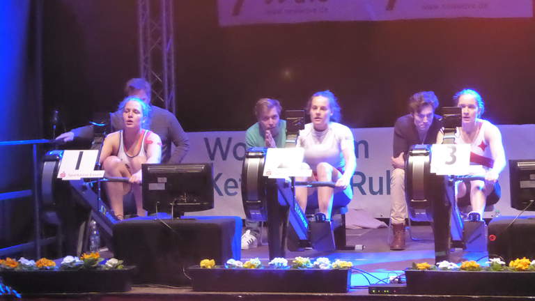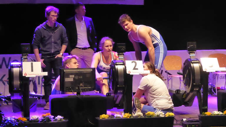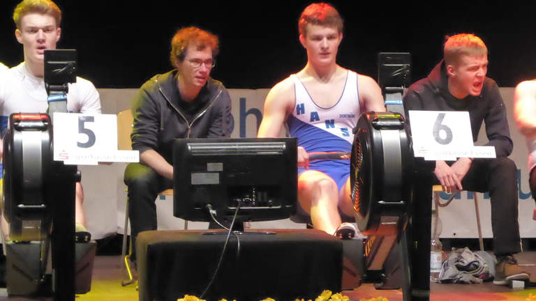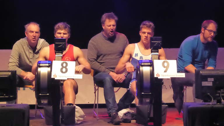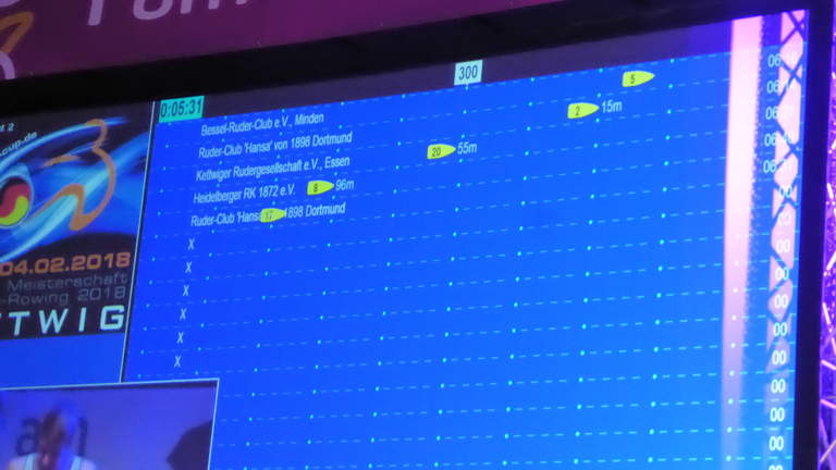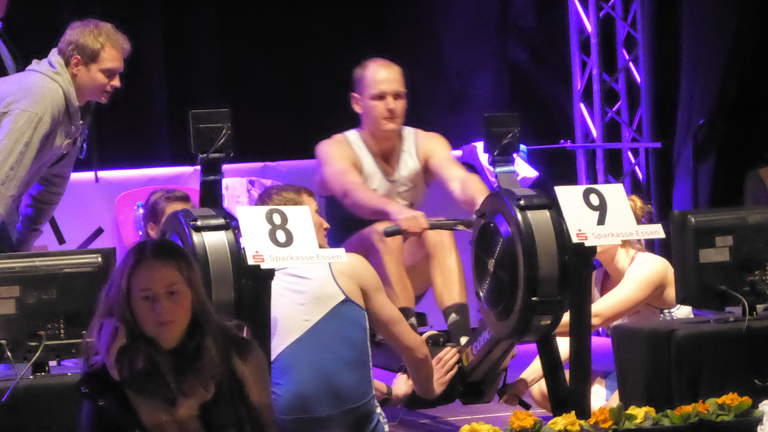 Schon morgens um kurz nach 9:00 Uhr ging es am letzten Sonntag (04.02.2018) in der gut besuchten Sporthalle des Theodor Heuss Gymnasiums in Kettwig los. In mehreren Tagen wurde sie zum "Ergotempel" umgebaut mit großer Bühne, Licht- und Soundanlage. Die Zuschauer können dabei die Rennen live auf großen Videowänden verfolgen. Nach Meinung vieler ist das spannender als so manche "echte" Ruder-Regatta.
