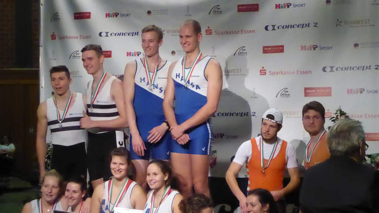 "Hoffentlich nicht schon wieder ein Paar Slides", so die nicht ganz Ernst gemeinte Hoffnung der mitgereisten Schlachtenbummler. Die Slides gibt es nämlich für den 3. Platz in der Gesamtwertung und wurden letztes Jahr errudert. Für das Ruderergometer (1. Platz) hat es dann nicht ganz gereicht. Aber dank eines furiosen Schlussspurts bei den Vierern konnte der 2. Platz gesichert werden.