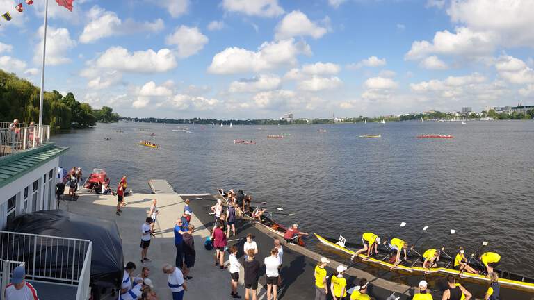 Dort wo Hamburg am schönsten ist, auf Außen- und Binnenalster, sind am 15. Juni die Dortmunder Hanseaten in Renngemeinschaft mit dem Stralsunder Ruderclub beim 30. Hamburger Staffelrudern neben knapp 700 weiteren Ruderern an den Start gegangen.