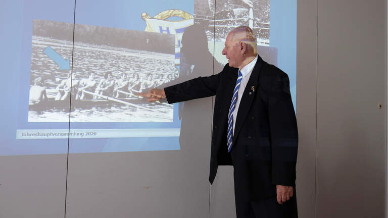 Die Vorsitzenden der Fachressorts Sport, Kommunikation, Finanzen, Verwaltung und Jugend berichteten über das vergangene Jahr. Erfreulich ist die Entwicklung der Mitgliederzahl: 442 Ruderinnen und Ruderer versammeln sich unter der Hansa-Flagge.