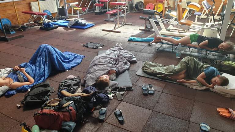 wieder lila wurden. Zum letzten gemeinsamen Frühstück wurden wir von dem sanften trommeln des ersten Regens der Woche geweckt. Dabei wurde das altehrwürdige, traditionelle Wanderfahrts-Zelt: Yetis-Villa, in der vermutlich schon jeder, der öfter dabei war, drin geschlafen hat, überflutet.
