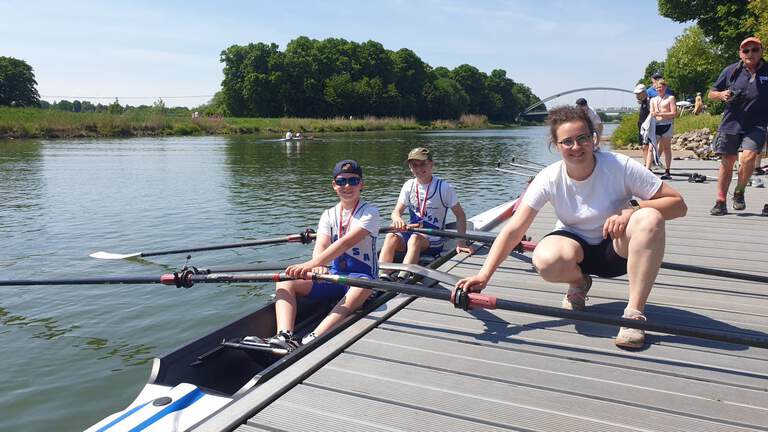 Auch hier konnten wir ein paar Siege nach Hause mitnehmen. Fynn und Juri haben im Leichtgewichtszweier gegen ihre Gegner sehr gut angekämpft, sodass sie am Ende als Erste die Ziellinie erreicht haben. Emma und Mila haben sich ebenfalls im Zweier eine Medaille errudert. Sophia hat im Einer den zweiten Platz in ihrem Lauf errudert. Die Jungsvierer wurden abgesagt, da es keine Gegenmeldungen gab, sodass die restlichen Jungs am Sonntag nicht gestartet sind.