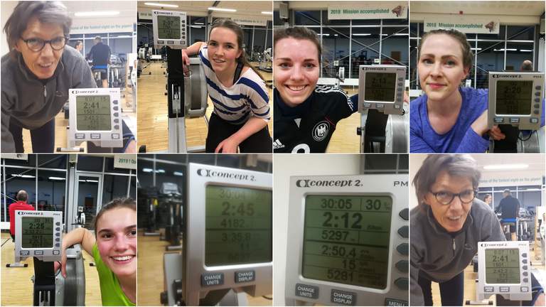 Für die nächsten vier Wochen gab es einmal wöchentlich ein Pflichtprogramm auf dem Ergometer zu absolvieren. Die erste Etappe ging über 8 Minuten, dann folgten 15, 22 und final 30 Minuten. Neben den weiblichen Vereinsmitgliedern waren auch externe Sportlerinnen, die vielleicht noch nie auf einem Ruderergometer gesessen haben, und natürlich die Stützpunktruderinnen herzlich willkommen. So machten wir in unseren Freundeskreisen reichlich Werbung und erhielten ordentliche Resonanz. Die gemeinsamen Ruderveranstaltungen waren geprägt von Spaß, sportlichem Ehrgeiz und Frauenpower. Einige wuchsen über sich hinaus, andere waren überrascht, wie schnell man die Technik auf dem Ergometer erlernen und ausbauen kann.