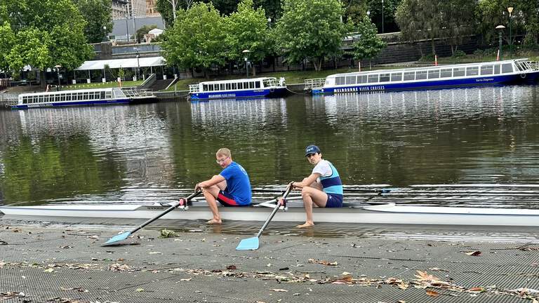 Für mich ging es dann mit meinem Melbourner Ruderpartner in einem Doppelzweier auf den Yarra River. Hier zeigten sich direkt einige Unterschiede zu unserem Procedere. Die Boote werden immer abgeriggert gelagert, somit passen natürlich deutlich mehr Boote in die Bootshalle. Geriggert wird dann mit Schnellverschlüssen vor jeder Einheit. Beim Ablegen bekommt man hier auch zwingend nasse Füße, da der Steg eher einer Rampe in den Fluss gleicht. Wir fuhren eine Trainingseinheit über 10 km und ich musste mich sehr konzentrieren um bei dem ungewohnten Ausblick auf die Innenstadt von Melbourne und zahlreiche Hochhäuser, nicht den Fokus zu verlieren.