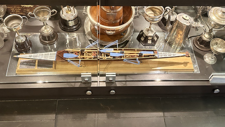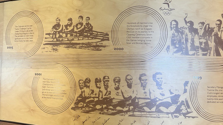 Völlig spontan waren wir etwa zwei Wochen später auch in Sydney Gast bei einem Ruderclub. Dieser hat im Bootshaus einen riesigen Gastrobereich mit Clubrestaurant, Bars, Saal für Gruppenfeiern und Casino. Bei bestem Blick aufs Wasser und leckeren Gerichten staunten wir über diese in Deutschland nicht vorstellbare Einrichtung und genossen einen schönen Nachmittag. Der gesamte Komplex war dekoriert mit Wandbildern über die Cluberfolge und gespickt mit Pokalen und allerlei Trophäen.