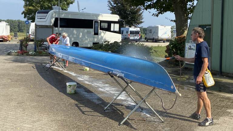 Am nächsten Morgen rudert wir unsere letzte Tour bis nach Venlo. Hinter Venlo holten wir unsere Boote heraus und reinigten vor Ort alle einmal.