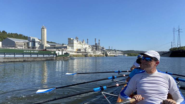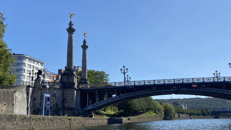 Am nächsten Tag starten wir von Amay in Richtung Lüttich. Im Stadtzentrum von Lüttich angekommen, ruderten wir unter der Engelsbrücke durch. Die Fragnee-Brücke, zu Engelsbrücke entstand anlässlich der Welt-Ausstellung von 1905 im Geist der Pont Alexandre lll zu Paris. An beiden enden der Brücke erheben sich zwei Pfeiler, gezielt von Trompete blasende Engeln aus Gold und Bronze.Wir halten uns rechts von der Insel zum Ruderclub Royal Sport, Nautique de la Meuse. Wir ruderten bis zum anderen Ende der Insel und stellten fest, dass wir zu weit gerudert sind. Also ging es zurück zu dem Ruderclub, den wir gesehen haben. Auf die letzten 700 Meter hieß es: Noch mal alles geben. Kein Problem - ich saß auf Schlag und zog nochmal ordentlich an. Endlich angekommen stiegen wir am Ruderclub Königliche Gesellschaft der nautischen Vereinigung in Lüttich aus. Das ist jedoch nicht unser Ruderclub für heute Nacht, wir müssen zum Royal Sport Nautique de La Meuse. Alle Mann also wieder ins Boot. Lüttich ist architektonisch äußerst abwechslungsreich Gründerzeitbauten neben fünfziger und sechziger Jahren Bauten.