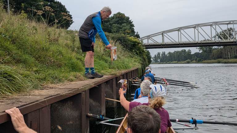 Damit haben wir nicht gerechnet. Uli Hahn suchte also auf seinem Handy nach einer neuen Route und wir ruderten aus dem Schleusenbereich raus, in den Canal Briegden-Neerhaven hinein. Im Yachthafen von Kanne holten wir die Boote heraus und haben sie auf den Anhänger verladen. Die Boote wurden noch am selbigen Abend zu dem Ruderclub gebracht, wo wir heute hätten anlegen sollen.