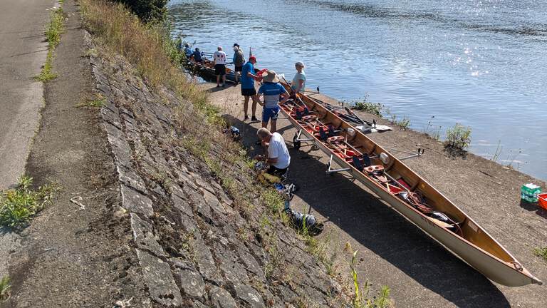 Am nächsten Morgen setzten wir unsere Boote wieder ins Wasser. Unser Ansprechpartner vom Ruderclub informierte uns, dass die Maas Untiefen hat und die Alternative wäre über den Julianakanal zu rudern, der nach einigen Kilometern trocken gelegt ist. Wir haben also die Entscheidung getroffen bis zum Ende des Julianakanal zu rudern. Dort holten wir die Boote heraus, um diese wieder auf den Anhänger zu verladen und brachten sie zum Watersportclub Aldeneiker Plas.