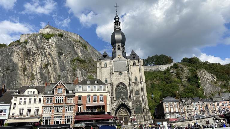 Wir ruderten auf der spektakulärste Strecke dieser Wanderfahrt. Die Felsnadeln auf der Maas im französisch-belgischen Grenzgebiet sind berühmt. Wir ruderten durch die wunderschöne Stadt Dinant durch, an deren Wahrzeichen, nämlich dem Schloss oberhalb des Ortes und der Kathedrale vorbei und überall sahen wir Saxophone. Es ist die Geburtsort von Adolphe Sax, dem Erfinder des Instruments.
