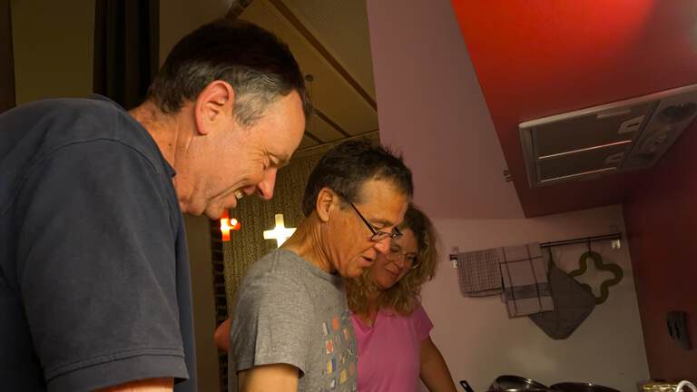 Uli Hahn, Antje und ich (Nicole) sind zum nächsten Supermarkt gefahren und haben die Einkäufe getätigt. Mit vier Einkaufswagen sind wir durch den Supermarkt gefahren und haben alle Lebensmittel eingekauft, die Leib und Seele zusammenhalten. In den Ferienwohnungen angekommen, beim tragen der Vorräte haben alle mitgeholfen. An diesem Abend haben wir selber gekocht, es gab Spaghetti bzw. Reis mit Bolognese. Gemeinsam haben wir zusammen gekocht, Tische eingedeckt, Kindersicherung aus der Herdplatte genommen und gespült. In gemütlicher Runde verbrachten wir den Abend und feierten in Georgs Geburtstag hinein.