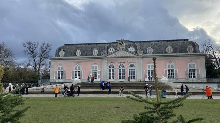 Nach dem Anlegen in Düsseldorf-Benrath ging es zum Bootshaus der Benrather Rudergesellschaft. Dort wartete schon der Landdienst mit unseren Taschen auf uns. Vom Bootshaus gingen wir durch den Schlosspark entlang des Spiegelweihers zum Jagdschloss. Der Besuch des Weihnachtsmarkts zwischen Schloss und Schlossteich mit seinen vielen kleinen Leckereien war der Höhepunkt der vorweihnachtlichen Wanderfahrt.