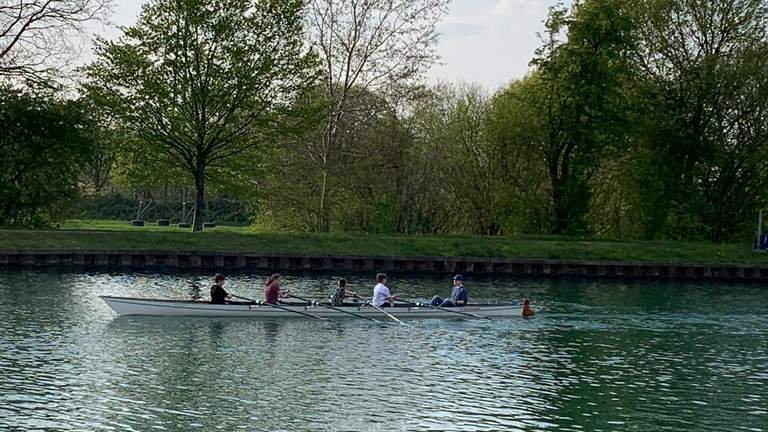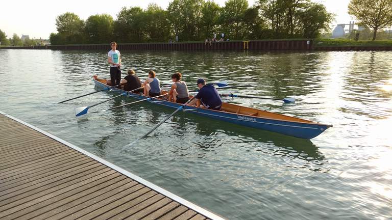 Rudern ist ein Wassersport. Deshalb müssen alle Teilnehmer schwimmen können!